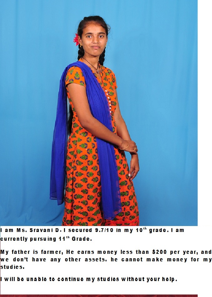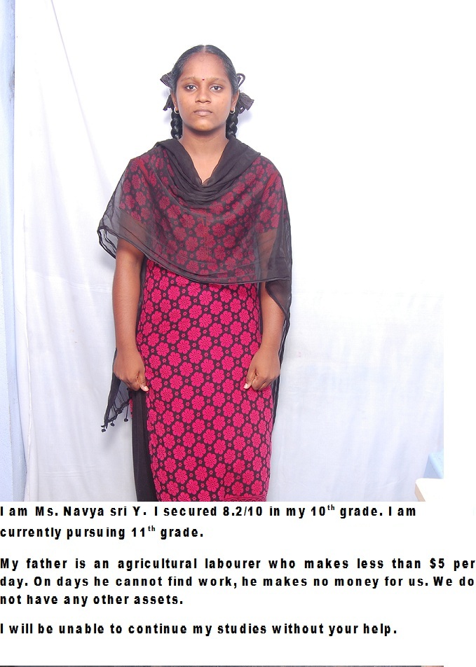 They are able to secure admission into state aided educational institutions based on their academic merit. Still they are on the verge of dropping out because they are unable to buy school supplies or afford local transportation e.t.c.